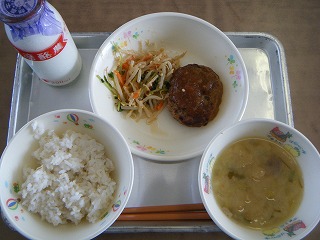 今日は、人気メニューの一つのハンバーグです。盛りだくさんのメニューを楽しみにしている人がいます。ごちそうさまでした。