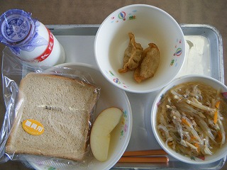 ココアパン ぎょうざ 八宝菜 くだもの 牛乳