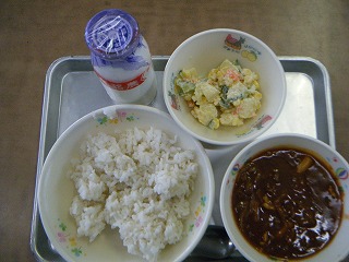 カレーは人気メニューです。残さず食べて元気に過ごします。