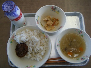 セルフひじきごはん 和風バーグのあんかけ 米粉のだご汁 牛乳