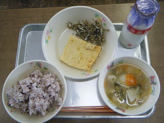古代米ごはん 千草焼き 雑煮 ごまめ 牛乳