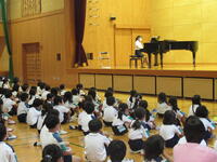 この日は、教育実習生のピアノ演奏を、全児童で鑑賞しました。