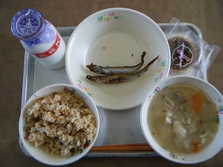 五目ごはん  ししゃも  だご汁  デザート  牛乳