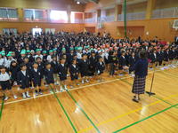 その後、校長先生から、修学旅行時の6年生の話を聞く態度が立派であったという話がありました。また、今日の集会の話を聞く姿勢も、どの学年もよかったと思います。麦島小学校の子供たちの成長が感じられた全校集会でした!