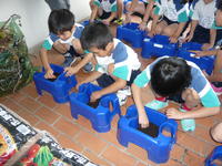子どもたちは自分自身が作ったお弁当を、友達と仲良く、楽しみながら食べていました!