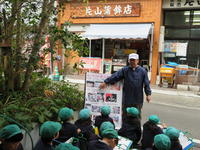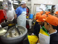 次に、片山蒲鉾店さん(日奈久ちくわ)を訪問しました。工場内を見学させてもらったり、子供たちの質問に答えてもらったりしました。帰りには、作り立てのちくわを1つずついただき、子供たちはとても喜んで食べていました!