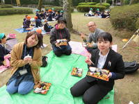 お昼は、八代城跡で昼食をとりました。先生たちもひと休憩です。
