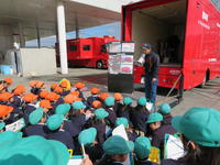 最後は、八代消防署さんを訪問しました。津波・大規模風水害対策車や支援車などの普段はなかなか見ることができない車両や庁舎内を見学させてもらいました。子供たちは、新たな発見の連続で感動していました!