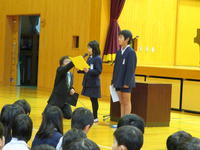次に、学年代表の児童から、2学期に頑張ったことや成長したことなどについて作文発表がありました。内容、態度共に立派な発表でした。