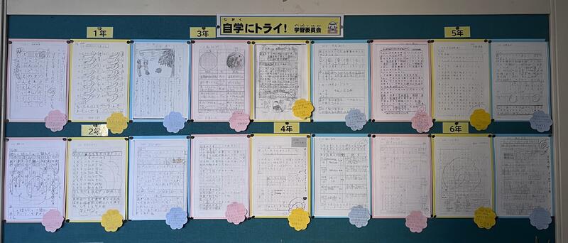 職員室前に「自学にトライ!」というコーナーを作っていますので、是非見てください。