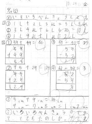 マスをむだなく使い、とってもすごいです!答えもまちがってないのもすごいと思います!これからも自学に取り組んでがんばってください!