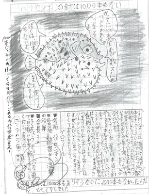 ハリセンボンの絵も上手に書けていて、名前や、生息地など特ちょうもしっかり書けていて良いですね。