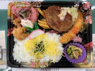おかずも 唐揚げ ハンバーグ エビフライ と ボリューミー
