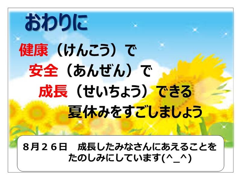 今後、更に、最高気温が上昇すると思われます。ご家庭でも、声かけをお願いします。