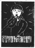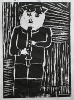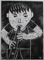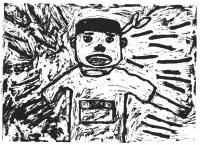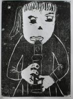 今回の木版画では、友だちと一緒に好きなことや得意な活動をする自分を意欲をもって版に表すことができました。また、表したい思いがよく伝わるように画面構成を工夫すると共に、彫刻刀の特徴を生かした彫り方を工夫して作品を仕上げました。
