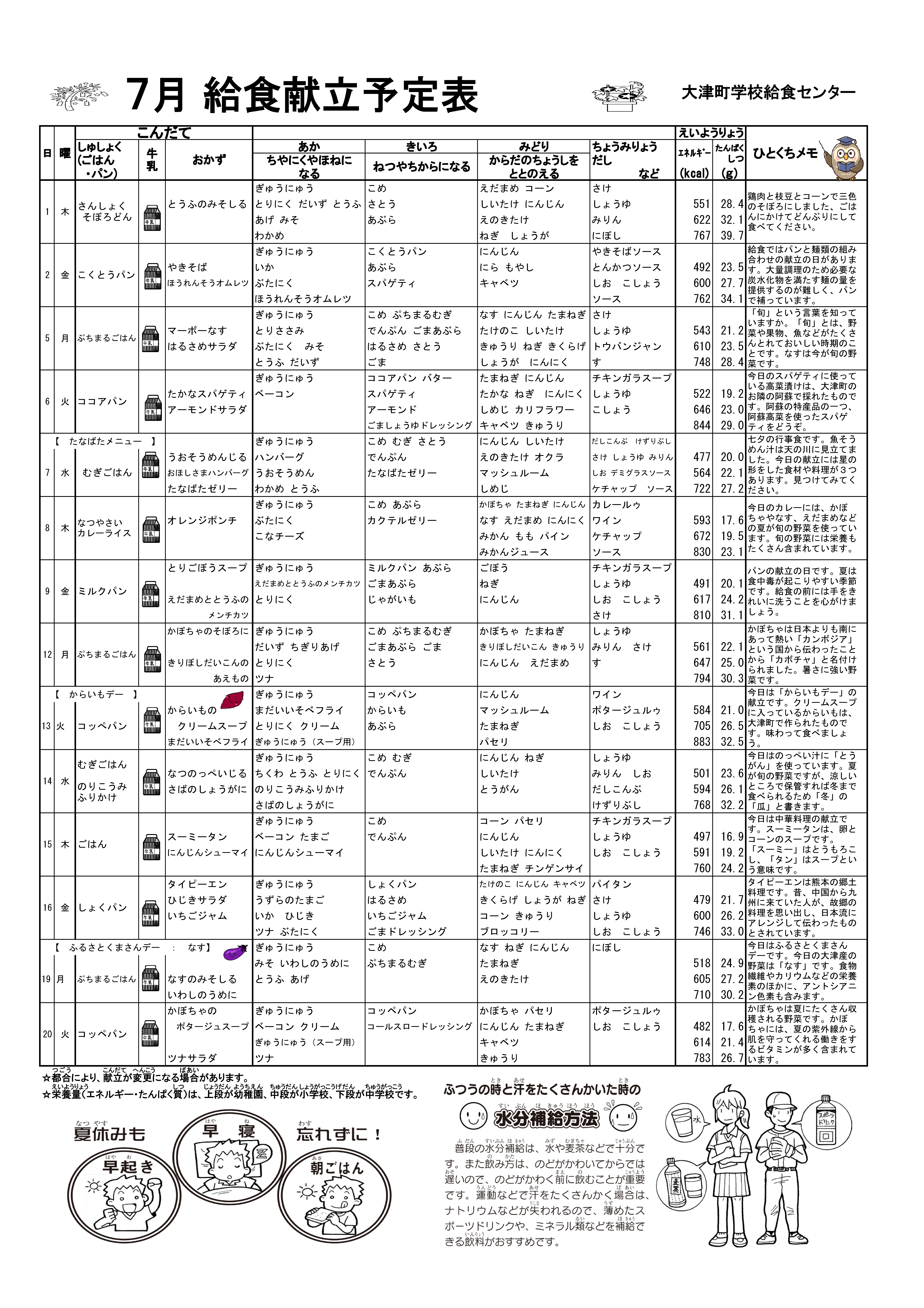 今後、更に、最高気温が上昇すると思われます。ご家庭でも、声かけをお願いします。