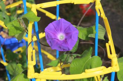 1年生が5月にアサガオの種をまき、きれいな花を咲かせています。