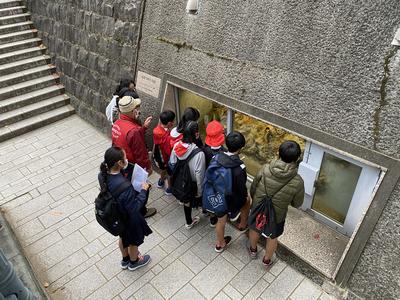 また、書庫も特別に見学させていただきました。ボタンで動かすタイプの本棚に「うわーー。」と目を輝かせる子供たち。たくさんの本が保存されていることに驚いていました。