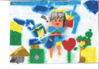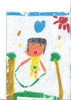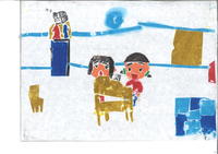 子供たちは、ポストとたこの子供たちとのあたたかい交流を描くことができました。
