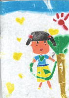 そして、私が、読書感想画に描いた場面はメグちゃんとぴかちゃんが遊んでいるところとぴかちゃんがお願いしているところです。ぜひ「わすれんぼっち」を読んでみてください。