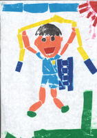 1年3組の子供たちは「ぞうのエルマー」の感想画を描きました。