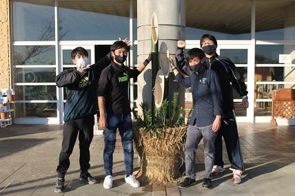 PTAの今村会長と首藤副会長が、大きな竹とともに来校され本校の教頭と主幹教諭も加わって門松を立てました。まず驚いたのが、竹のサイズ。建物3階分くらいの高さがあったとか。