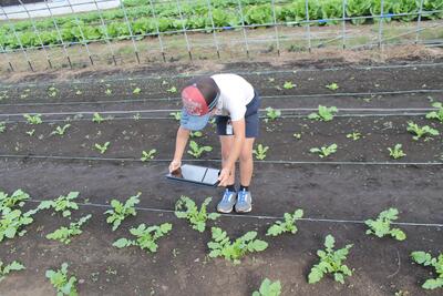 子供たちの観察は例年と違い、タブレットで写真をとって冬野菜の生長を観察をしています。
