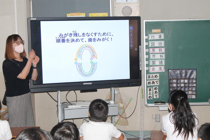 私たちは、心身の健康を維持・向上するために、食べ物を口からとっています。さらに現代では栄養を摂る目的にとどまらず、「おいしく味わって食べる」という、こころの豊かさのためにも食べることは大切になっています。そして食べ物を幅広く豊かに食べるためには、歯・口が健康であることが必要です。大津町の小学校では歯科検診だけでなく、その後の歯磨き指導やむし歯予防指導に力を入れています。