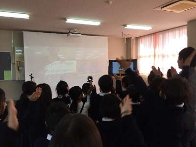 まず、「幸せなら手をたたこう」の英語バージョンを練習し歌いました。