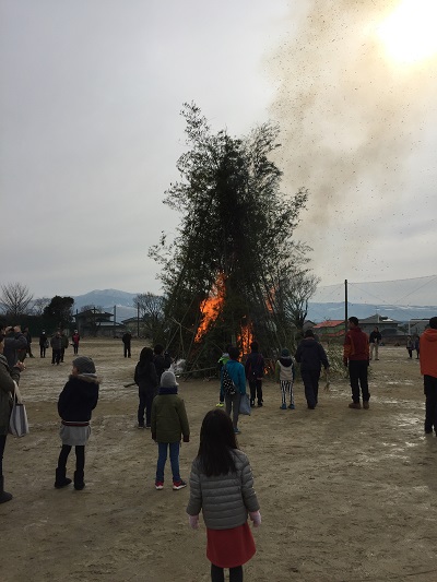 10時半に児童代表が着火し、勢いよく炎が上がりました。