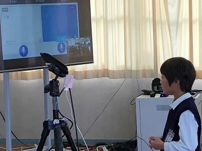 当日は2年2組の向井教諭と子どもたちが台湾と交流つながりました。