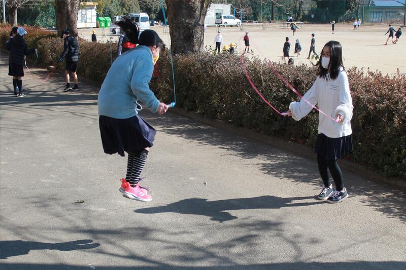 校庭の至る所で、縄跳びをしている子供たちの姿があります。