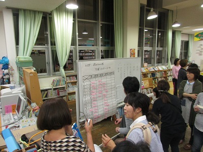 スタート会では、各ボランティアの皆さまのあいさつの後、担当学級を決めたり、読み聞かせのミニ講習会を開いたりしました。