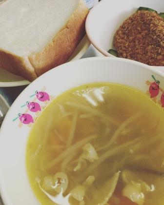 16日は第2弾として、大分県の鶏めしと団子汁が給食にでました。