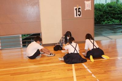体育館で話合いをしている様子です。