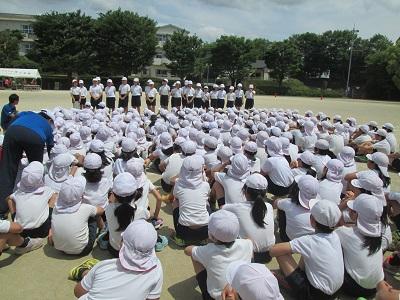 その後、体育主任からの話で、へ「返事をしましょう」い「移動は素早くしましょう」せ「背筋や手をピンと伸ばしましょう」い「命を大切にしましょう」ということをみんなで確認しました。