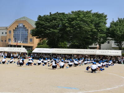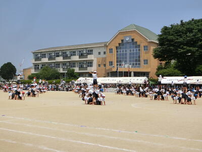 6年生は、リレー「速すぎるほどにもほどがある!」、表現・集団演技「思いのバトンを未来につなぐ」を頑張っていました。リレーではバトンパス、走る距離などを考えた、一人ひとりの意見を取り入れた走りでした。表現では、6年間の経験を生かした迫力のあるダンスと組体操を見せてくれました。6年生の応援団は張り切って、全力で応援していました。思い出に残る最高の運動会になりました。
