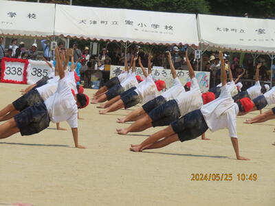 4年生は団体「ザ・つなひき」、表現「室小ソーラン2024」を頑張っていました。団体では4年生が一致団結し、協力し、全力を出していました。表現では、3年生のみなさんと一緒に踊り、赤はっぴのダンスリーダーのみなさんが3、4年生を引っ張っていました。