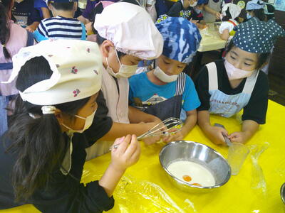 そのあと、アイス作り体験をしました。まずは、牛乳、生クリーム、卵黄、砂糖を混ぜました。そして、氷に塩を入れたボウルに付け、はがしながら混ぜ続けました。