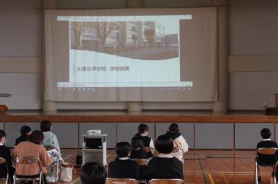 今回は、大津北中学校の校長先生をはじめ、数名の先生方がいらっしゃって説明をしてくださいました。