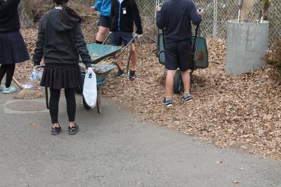 その一つとして、お世話になった校地校舎への感謝の意味を込めて、落ち葉ひろいや草取りなど清掃活動のボランティア活動を行っています。