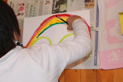 子供たちは、思い思いの虹をきれいに描くことができました。