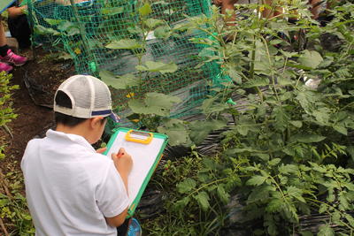 2年生の生活科や国語科の学習では、野菜を育てたり、観察したり、記録をしたりする学習をします。2年生は、キュウリ、なす、おくら、カボチャ、ミニトマトなどを育てます。