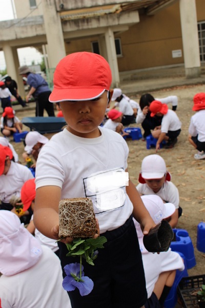 前期に育てたあさがおとは違い、水やりは週に1回程度にするということを確認し、花の苗植えを終えました。