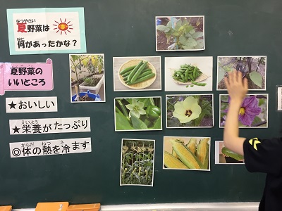 そして、栄養教諭が「夏の野菜の良さってなんでしょう」と問いかけました。