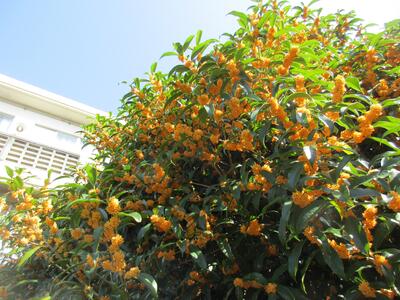 金木犀のすぐ横には1年生の教室が。教室は金木犀のいい香りで包まれ、なんだか勉強もはかどるような・・・