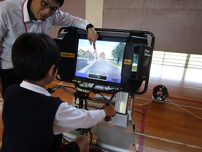 また、子どもたちは自転車のシミュレーターに乗り、自転車を運転するときに気をつけることを学びました。