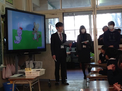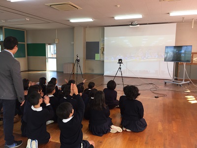 その際に、大同小の子どもと室小の子どもがお互いに英語の絵本を読み合ったりして、スクリーンを通してですが一緒に授業を受けることができました。