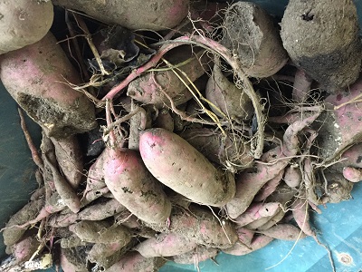 3年生が学校園で栽培したからいもを収穫し、からいもの天ぷらを作りました。