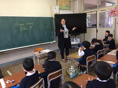 当日は2年2組の向井教諭と子どもたちが台湾と交流つながりました。